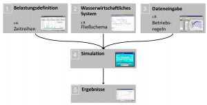 Die Simulation der Speicherbewirtschaftung verlangt die mathematisch verwendbare Darstellung eines wasserwirtschaftlichen Systems. Dabei muss die Realität abstrahiert, in hydrologische bzw. hydraulische Prozesse unterteilt und in Algorithmen gefasst werden. Die Abstraktion erfolgt mit unterschiedlichen Systemelementen. Werden die Systemelemente so angeordnet, dass sie die in der Wirklichkeit bestehenden Fließbeziehungen reproduzieren, ist die reale wasserwirtschaftliche Struktur für eine mathematische Simulation aufbereitet. Die Interaktion zwischen mehreren Systemelementen findet über die Belastung und den Elementausgang statt, wobei die Belastung in den meisten Fällen einem Zufluss und der Ausgang einem Abfluss entspricht. Der Ausgang eines Systemelementes entspricht der Belastung des nächsten, unterhalb liegenden Elementes. Nahezu beliebige wasserwirtschaftliche Systemstrukturen lassen sich durch unterschiedliche Anordnungen der Systemelemente nachbilden. Dieser Vorgang, auch Strukturanalyse genannt, legt die geographischen Verhältnisse und Interaktionen fest. Ergebnis einer Strukturanalyse ist die Projektstruktur bzw. Systemlogik.