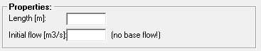 The length of the transport reach and the starting value for the flow are entered in the "Properties" section.