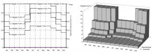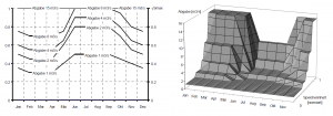 Bei der Option Jahresgang wird für verschiedene Zeitabschnitte des Jahres jeweils eine Funktion mit einer Stützstelle definiert. Beim konstanten Jahresgang erfolgt die Unterteilung jeweils nach Monaten, es gibt also isngesamt 12 Stützstellen. Beim variablen Jahresgang, wird an beliebigen Datumswerten unterteilt.